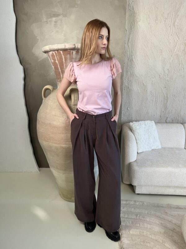 Spodnie posiadają na przodzie stylowe zakładki, szerokie nogawki zapewniają swobodę ruchów i będą pasować do wielu stylizacji.