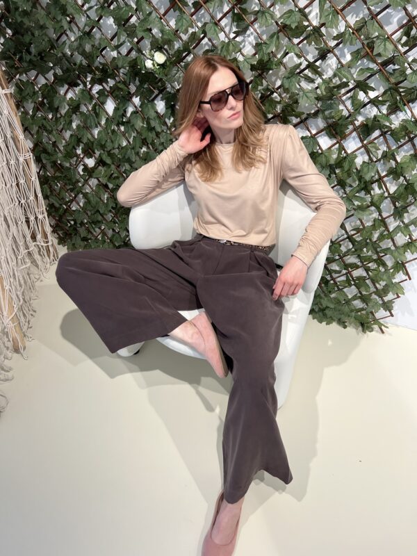 Klasyczny model, czekoladowych spodni które przyciągają wzrok jakością i krojem.